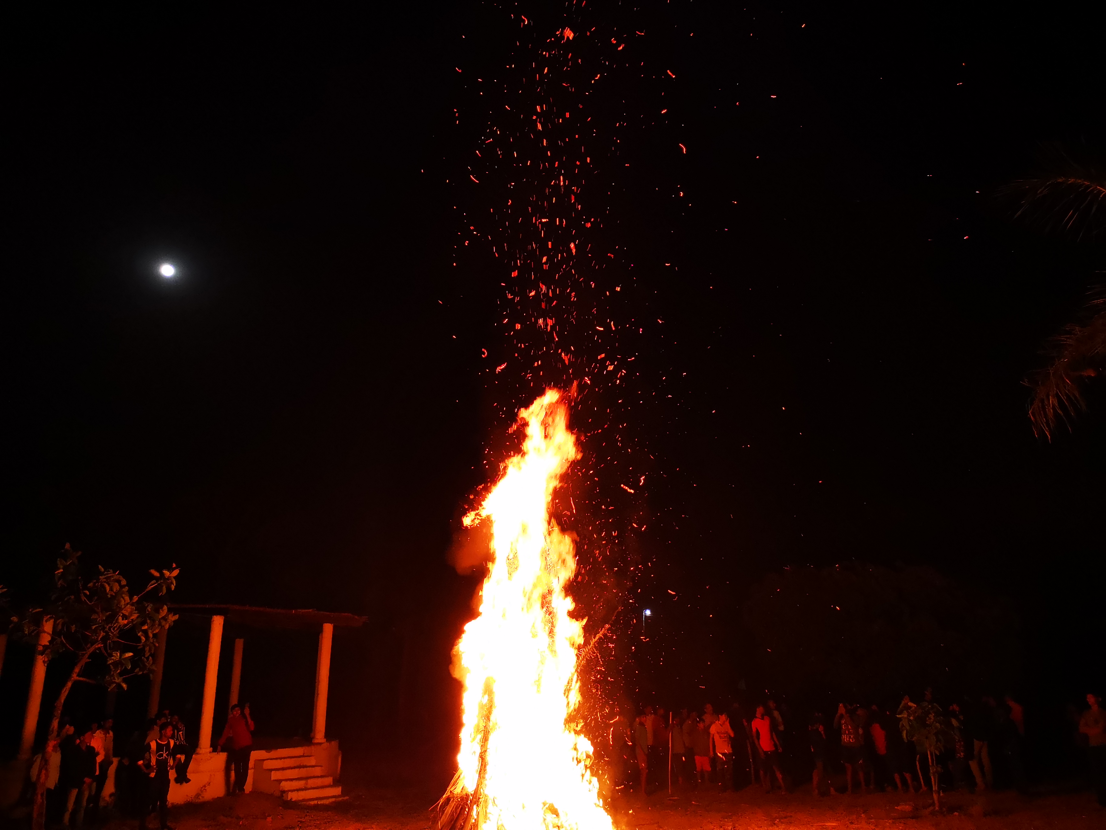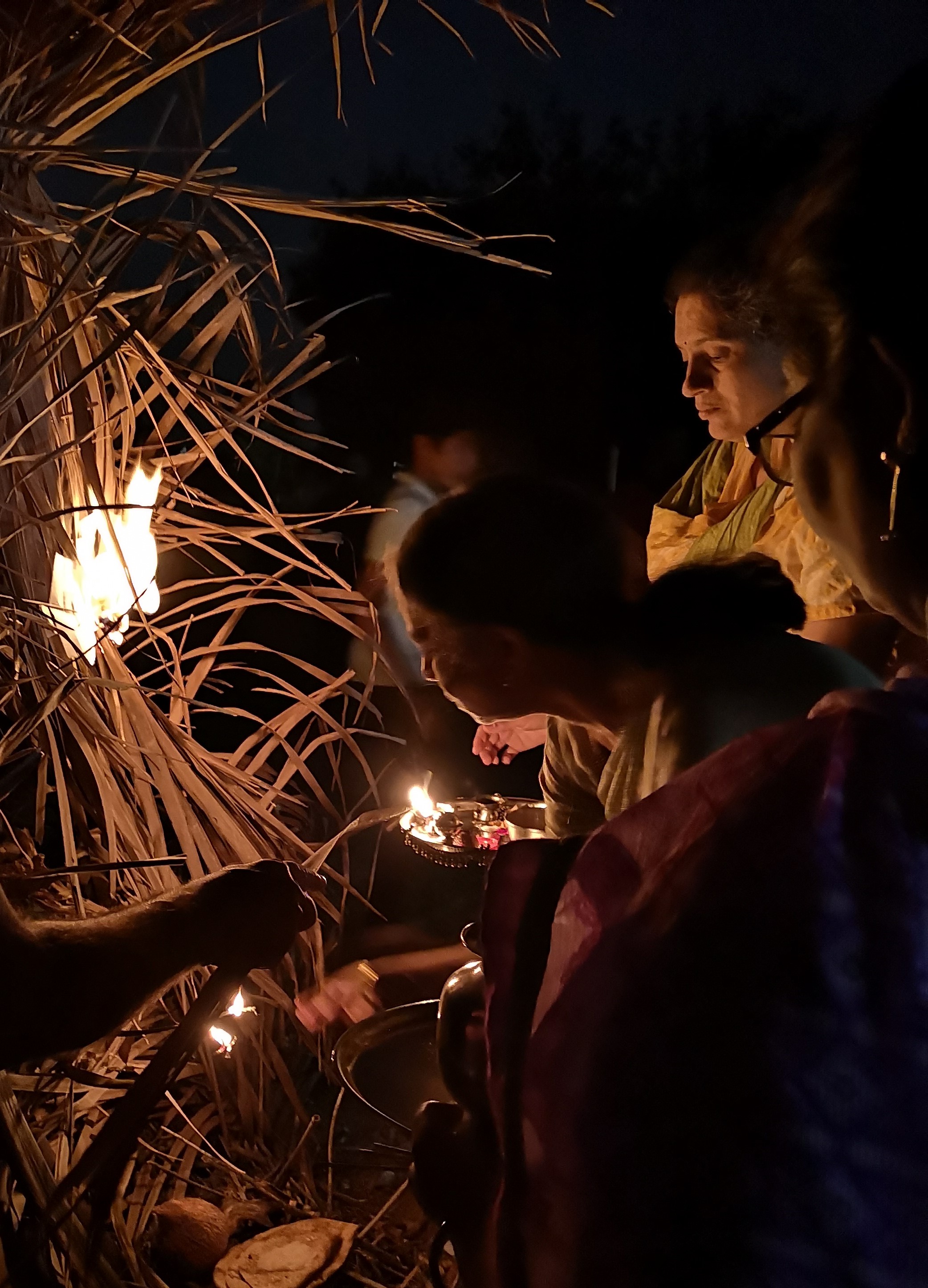 The pooja at the main location was done. Got some of the Prasad to mix it with the food being cooked in the communal kitchen. Gauri offered Prasad to the old gentleman, he received it in his cupped hands kept on his back. As he explained, ‘a blessing like that should take a bit of effort’. There are three more places the pooja is traditionally performed at JP Harali. One at the well, another in the mango orchard. Places that were once owned by other villagers. The traditional places of importance need to be honoured.